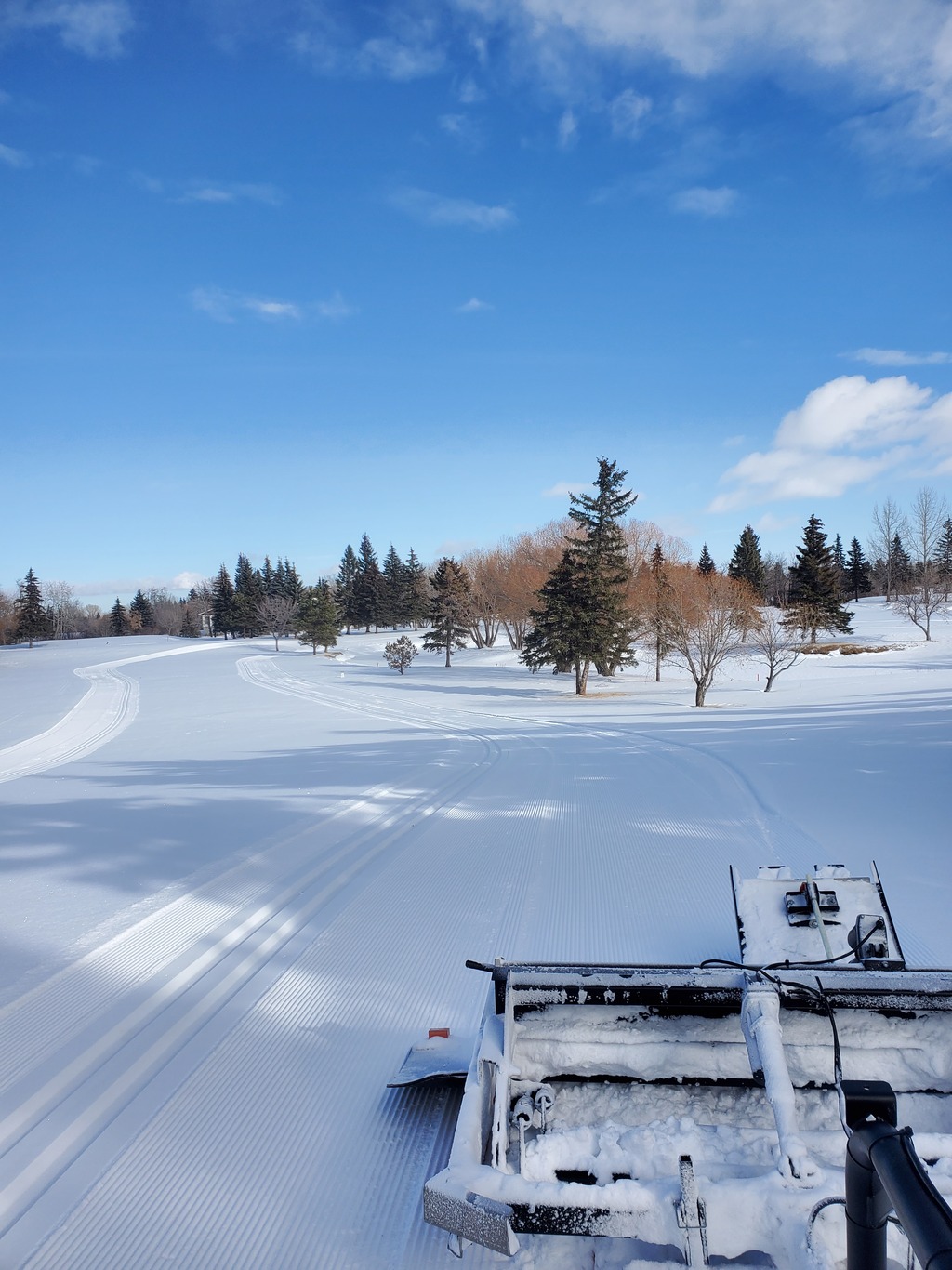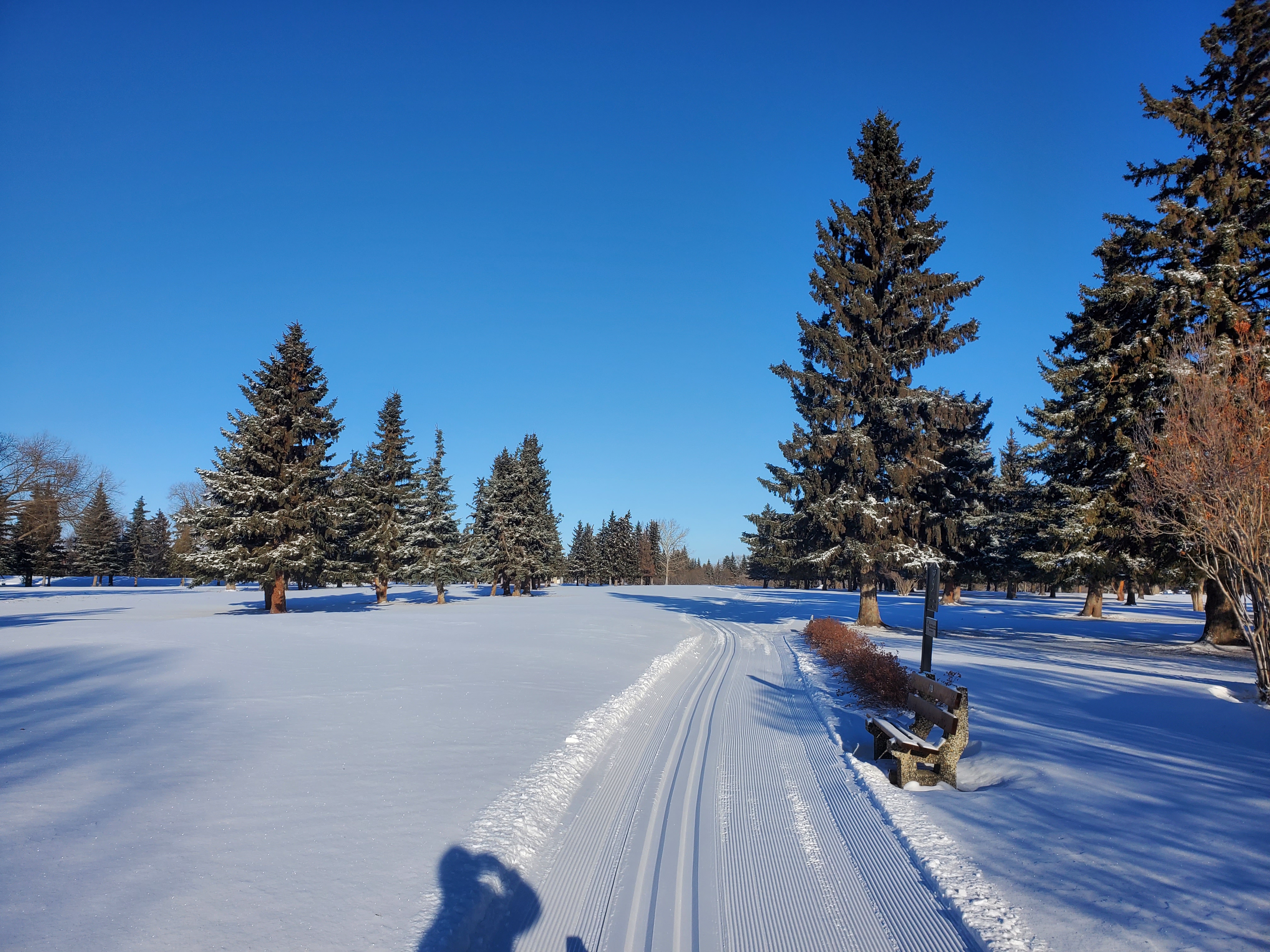 The LPH Nordic Center is located conveniently at the Leduc Golf Course right off Black Gold Drive. Rental ski packages can be found at the clubhouse were you can enjoy a great meal after your ski at Hacker's Grill. The course is typically 7.6Km in length and is groomed for classic and skate. The outer loop can be accessed from the parking lot at the east and west sides or south of the clubhouse. The 4km trail encompasses the outer edge of the course and is relatively flat with any hills being gradual and easy. The inner loop that can be accessed behind the clubhouse with the south trailhead or from the parking lot using the east entrance connector trail. This 3.6Km loop contains a few more short quick hills than the outer loop but is still beginner friendly. The course's convenient location with full services make it a perfect choice for group rentals for schools or team building events.