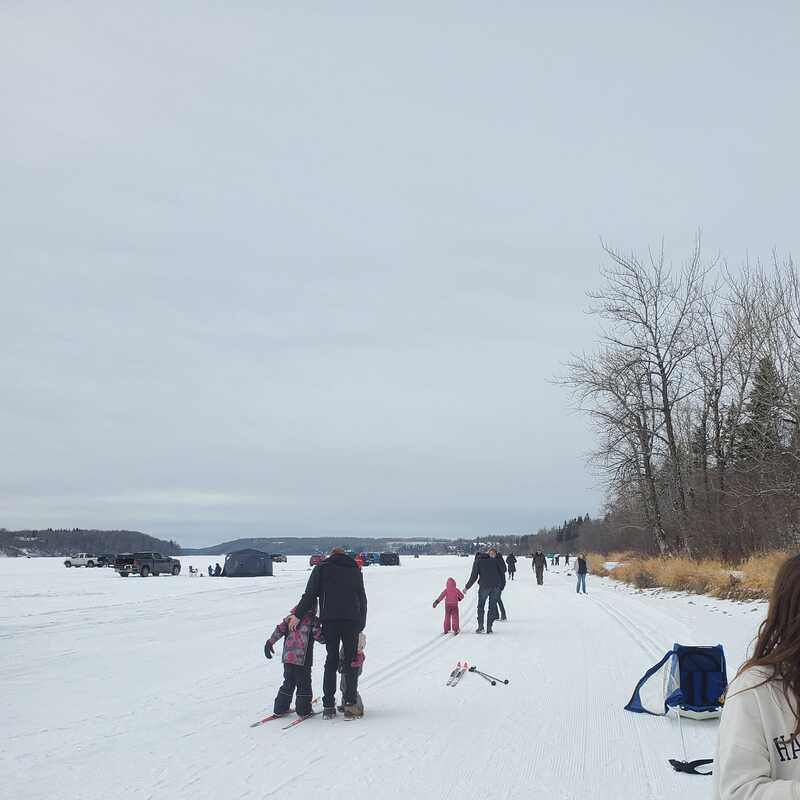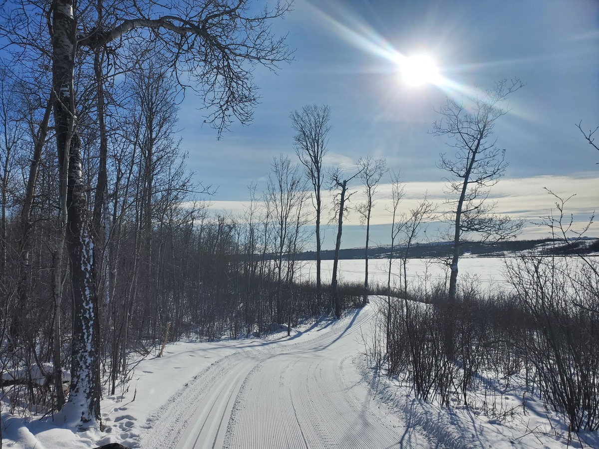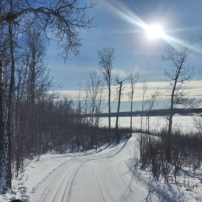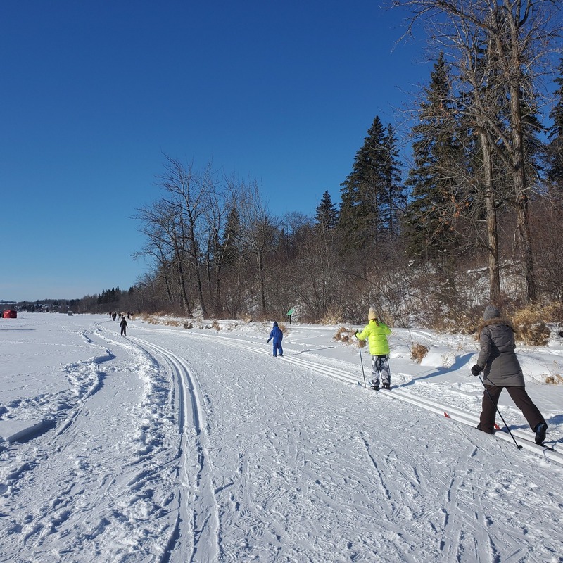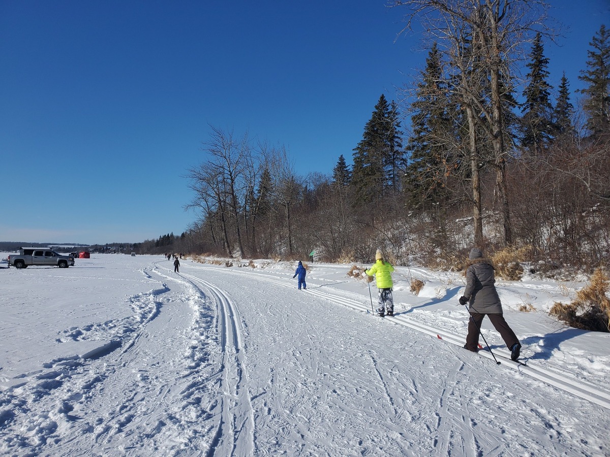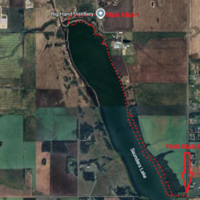 The Saunders Lake Ski Trails can be accessed from Rig Hand Distillery just off Airport Road and Range Road 244a. This 6km trail consists of 4km of scenic lake edge skiing with 2km of rolling hills through the trees. For beginner skiers it is recommended to access the trails from Rig Hand distillery but the South trail head can be accessed at the corner of Range Road 244 and Township Road 500. The South side of the trail contains a few steep hills and is home to many species of wildlife. Along with the standard 6km the West side of the lake is occasionally groomed and track set for an additional 4km of lake edge. Rental skis are also available at Rig Hand distillery where you can also find some amazing food and drinks.