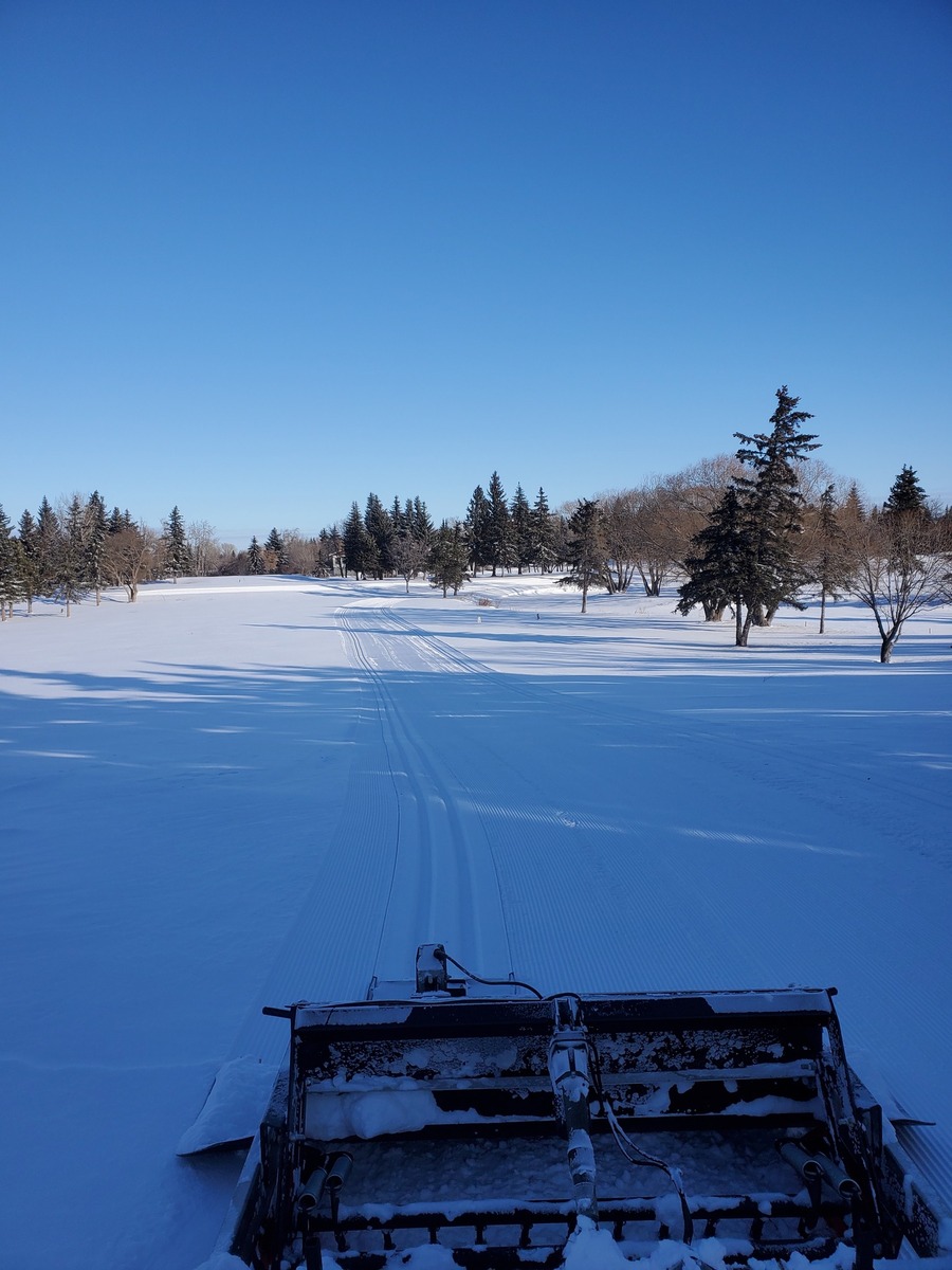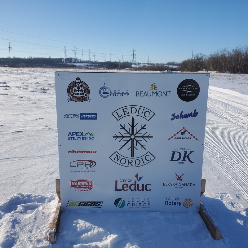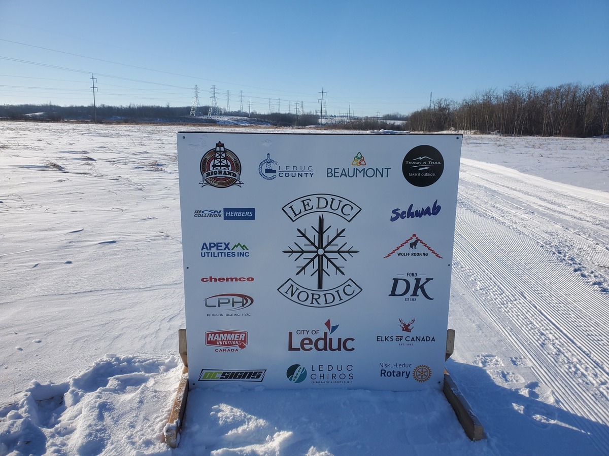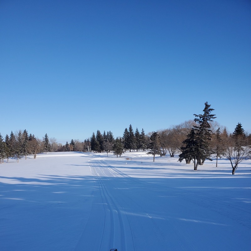 The LPH Nordic Center is located conveniently at the Leduc Golf Course right off Black Gold Drive. Rental ski packages can be found at the clubhouse were you can enjoy a great meal after your ski at Hacker's Grill. The course is typically 7.6Km in length and is groomed for classic and skate. The outer loop can be accessed from the parking lot at the east and west sides or south of the clubhouse. The 4km trail encompasses the outer edge of the course and is relatively flat with any hills being gradual and easy. The inner loop that can be accessed behind the clubhouse with the south trailhead or from the parking lot using the east entrance connector trail. This 3.6Km loop contains a few more short quick hills than the outer loop but is still beginner friendly. The course's convenient location with full services make it a perfect choice for group rentals for schools or team building events.