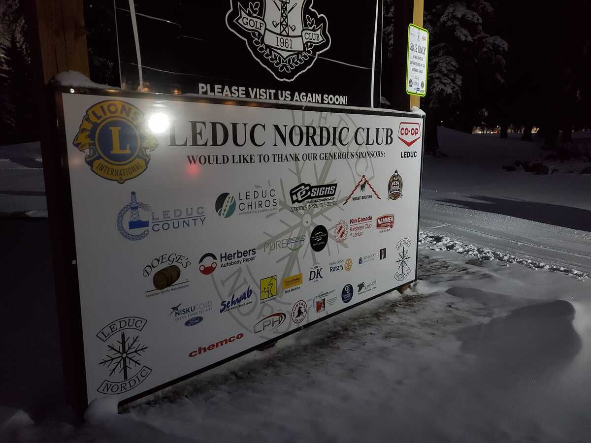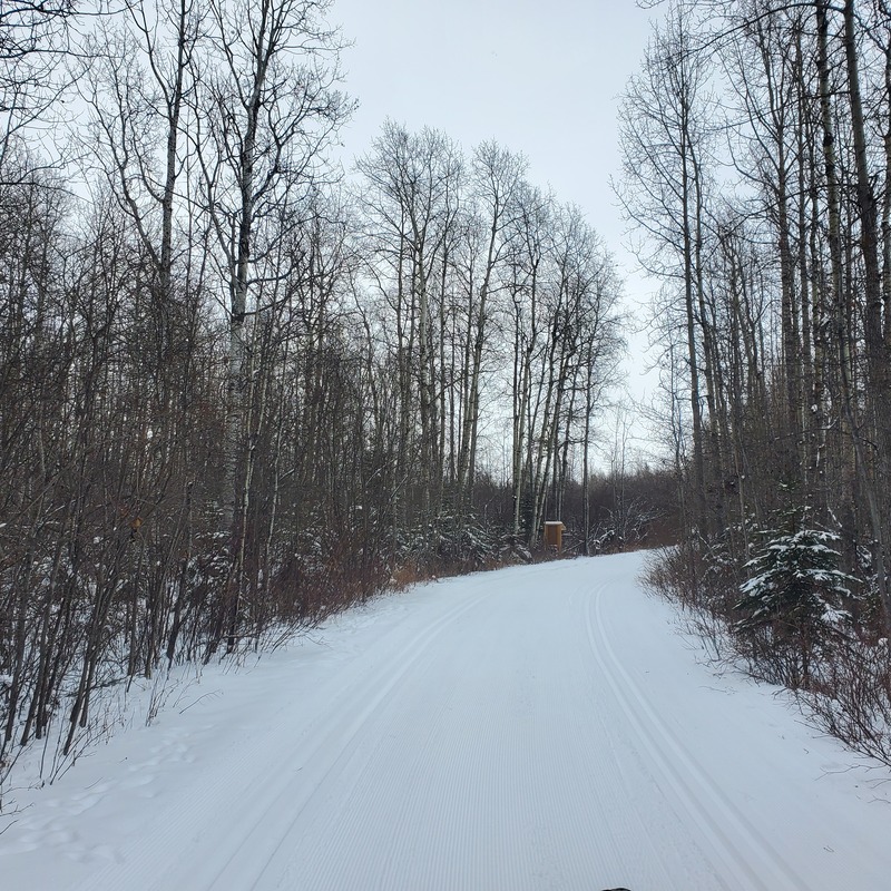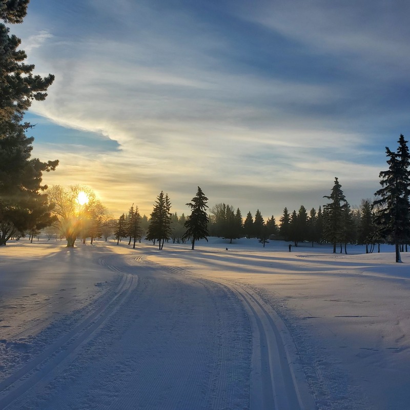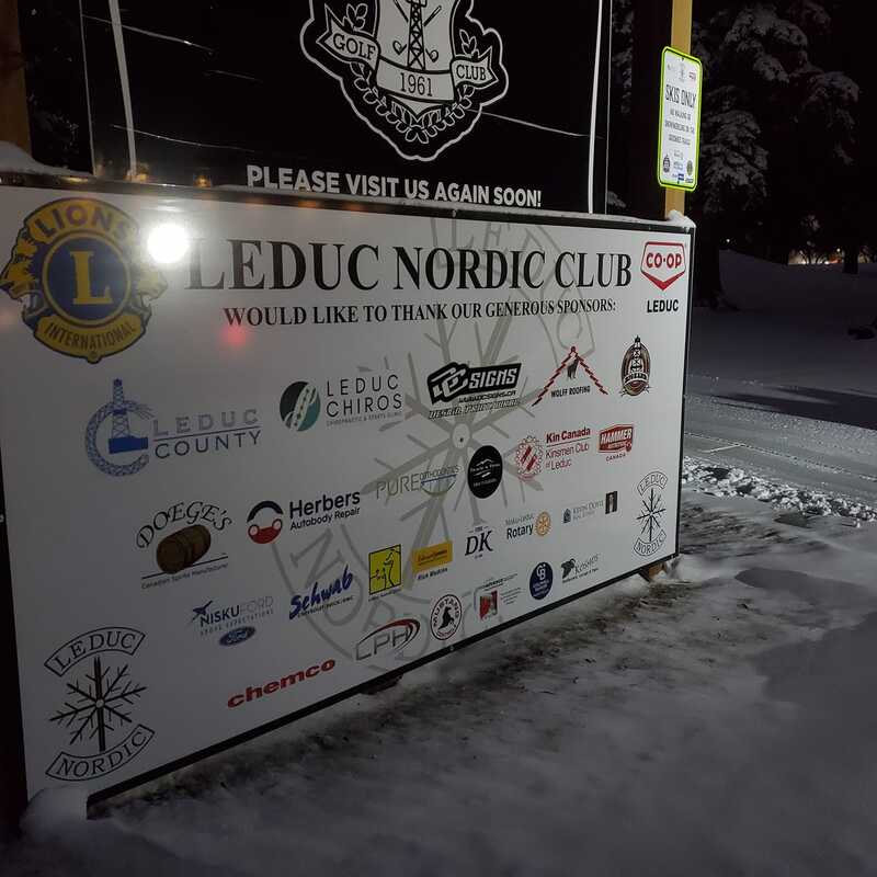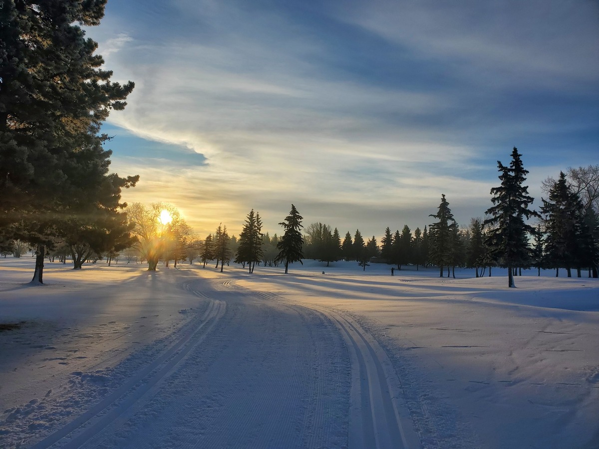 The LPH Nordic Center is located conveniently at the Leduc Golf Course right off Black Gold Drive. Rental ski packages can be found at the clubhouse were you can enjoy a great meal after your ski at Hacker's Grill. The course is typically 7.6Km in length and is groomed for classic and skate. The outer loop can be accessed from the parking lot at the east and west sides or south of the clubhouse. The 4km trail encompasses the outer edge of the course and is relatively flat with any hills being gradual and easy. The inner loop that can be accessed behind the clubhouse with the south trailhead or from the parking lot using the east entrance connector trail. This 3.6Km loop contains a few more short quick hills than the outer loop but is still beginner friendly. The course's convenient location with full services make it a perfect choice for group rentals for schools or team building events.